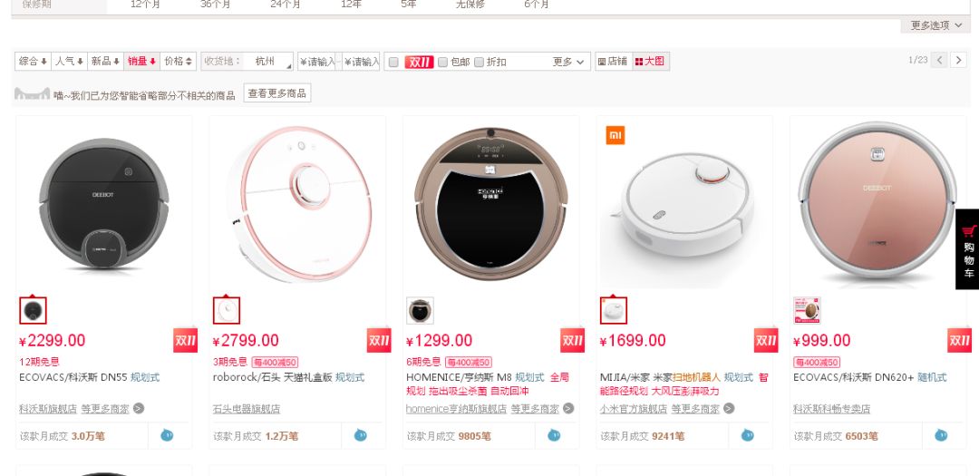 在天猫、京东、苏宁三大平台上牢牢占据线上扫地机器人成交额第一名。