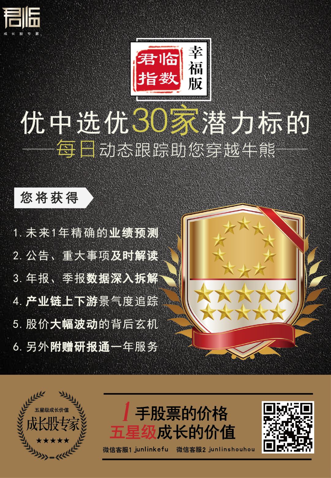 如今的君临,已聚集了一支专业和经验丰富的分析师团队,从3500家公司中精选出30家具有潜力的优质标的,并做长期跟踪。这些内容,每日发布在君临付费订阅幸福版。