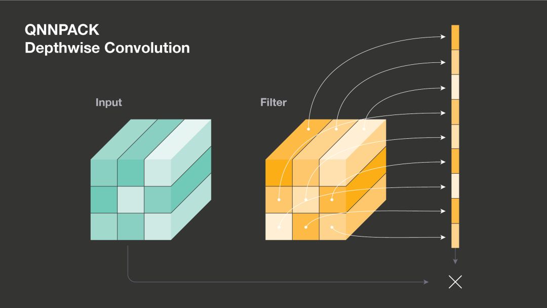 分组卷积(grouped convolution)将输入和输出通道分割成多组,然后对每个组进行分别处理。在有限条件下,当组数等于通道数时,该卷积就是深度卷积,常用于当前的神经网络架构中。深度卷积对每个通道分别执行空间滤波,展示了与正常卷积非常不同的计算模式。因此,通常要向深度卷积提供单独实现,QNNPACK 包括一个高度优化版本 3×3 深度卷积。