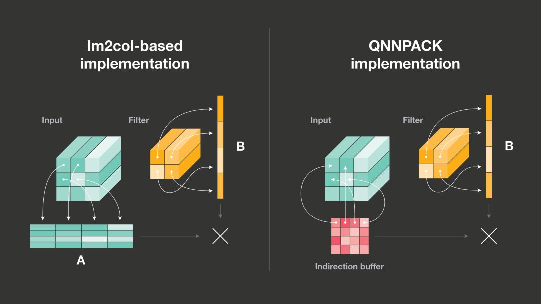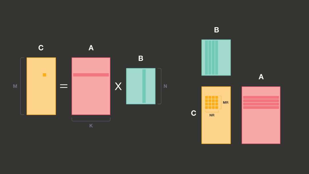 不直接在科学计算或者深度学习软件上工作的软件工程师可能不熟悉库是如何实现矩阵相乘的,所以在详细介绍 QNNPACK 之前,会有一个总体介绍。