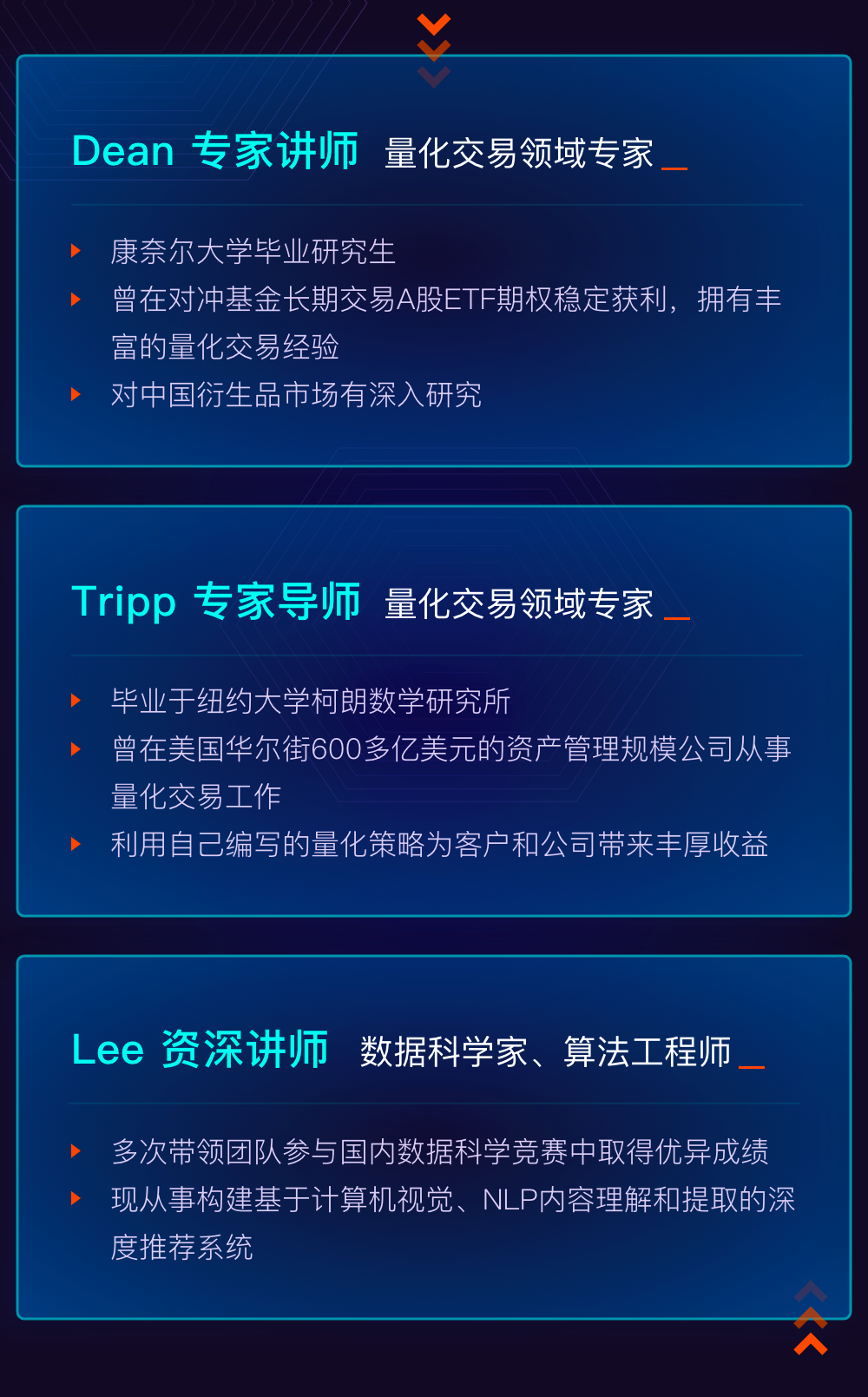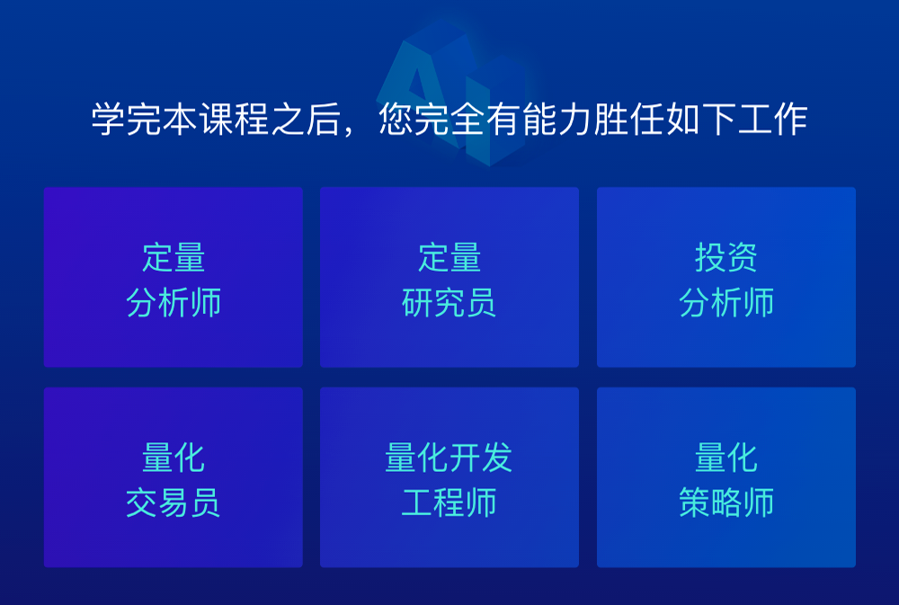 当然,如果你想要学习更多。除上面的课程之外,这里还有付费的《AI与量化投资人才培养计划》课程。企业级真实项目实训,将所掌握的知识融会贯通,帮你在求职就业的路上畅通无阻,绝对是你量化投资第一课的最佳选择。