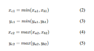 首先,利用公式(1)计算A和B的交并比(IOU):