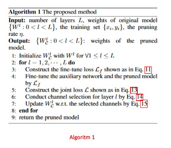 论文仍然沿用DCP算法中的贪心策略,通过考虑等式(13)的梯度来执行通道剪枝。
