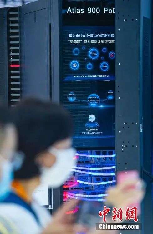 2021年9月3日,2021年中国国际服务贸易交易会在北京举行,在国家会议中心展区,华为公司人工智能计算中心Atlas 900 PoD设备参展。