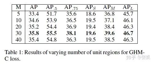 首先是超参的影响,M代表了划分区间,越大的话,越接近密度,但是由于每次迭代样本的随机性,也就越不稳定。在COCO上,M=30最好。