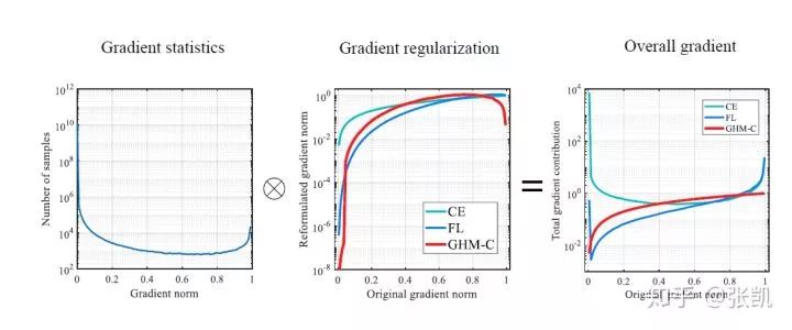 可以看到上图最右边Focal loss代表的蓝色的线在梯度为1的时候(outliers)比重是很大的。