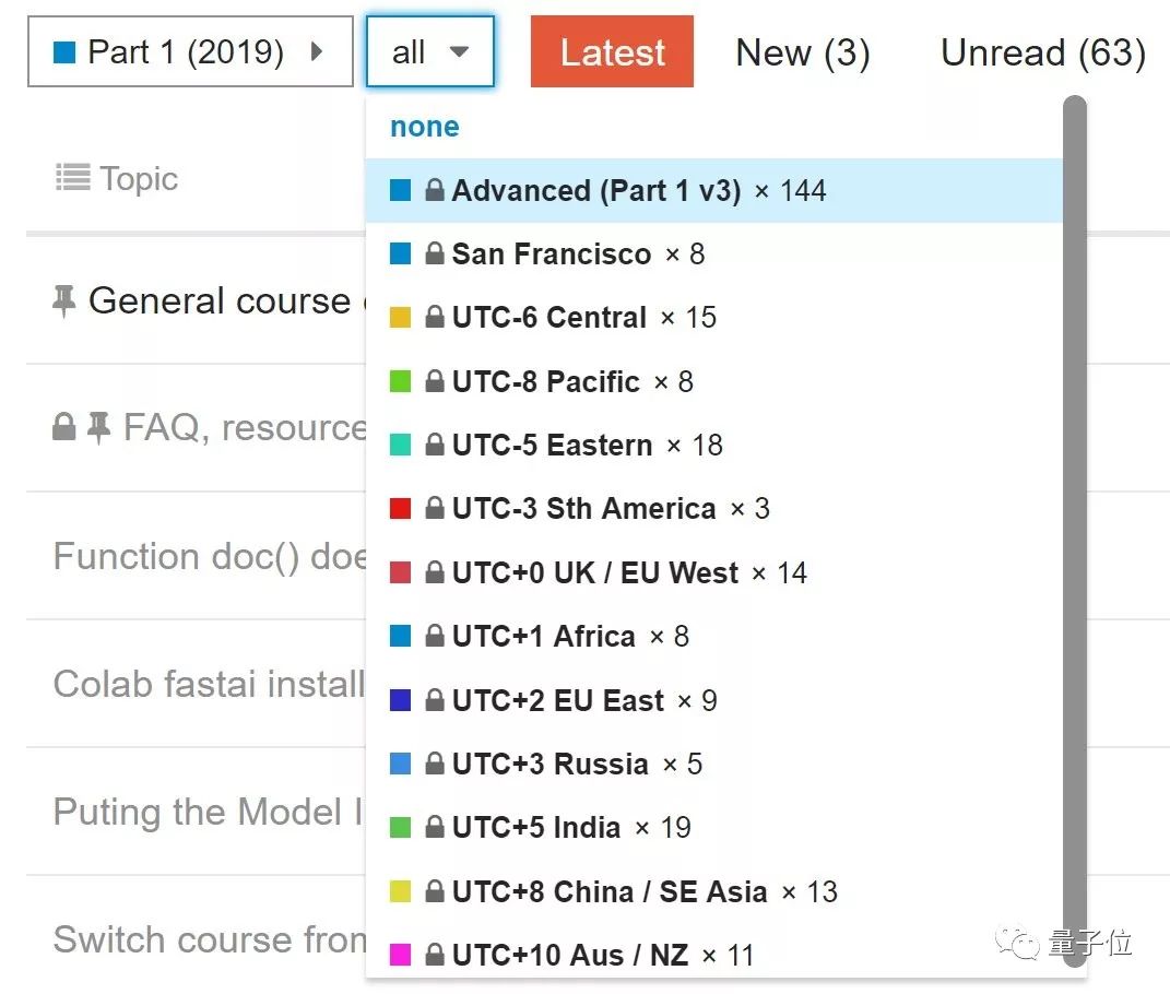 Jeremy介绍说,他们为课程论坛添加了新功能,能按照时区、地点、语言给话题分类,想创建或者寻找同一地区、用母语讨论的学习小组更容易了。
