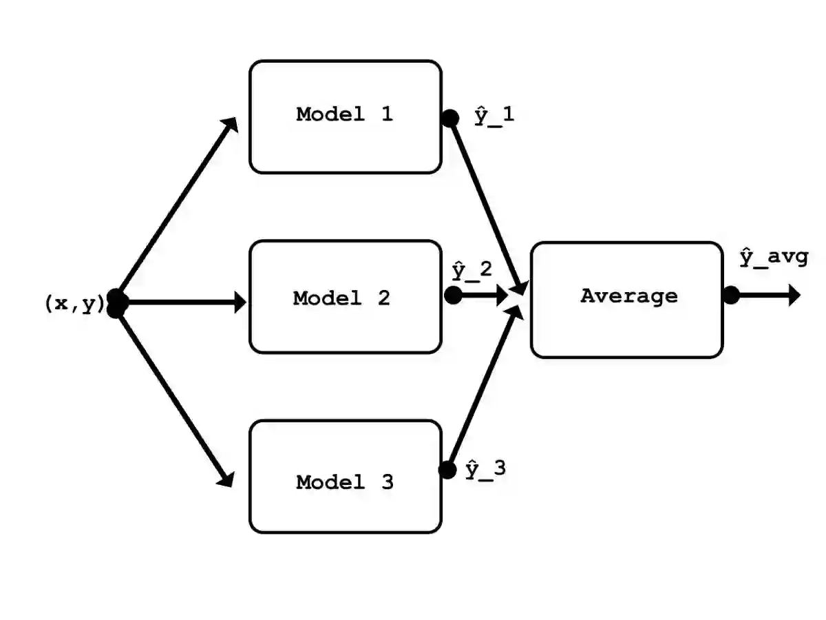 有很多种不同类型的集成:其中一种是堆叠(stacking)。这种类型更加通用并且在理论上可以表征任何其它的集成技术。堆叠涉及训练一个学习算法结合多种其它学习算法的预测 [1]。对于这个示例,我将使用堆叠的最简单的一种形式,其中涉及对集成的模型输出取平均值。由于取平均过程不包含任何参数,这种集成不需要训练(只需要训练模型)。