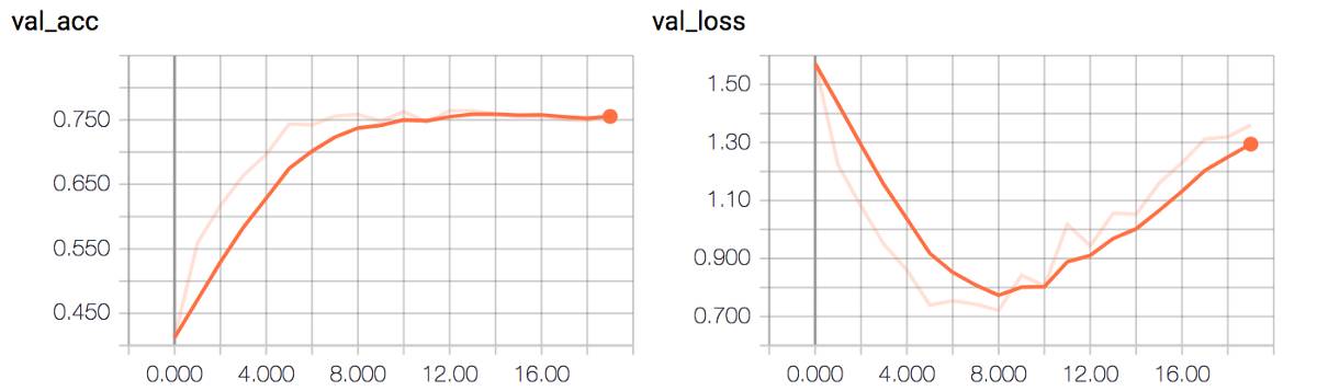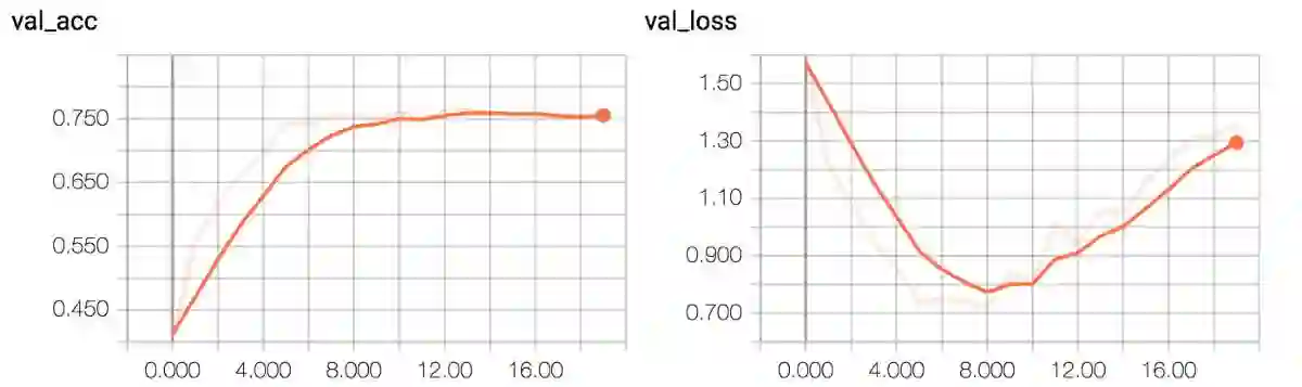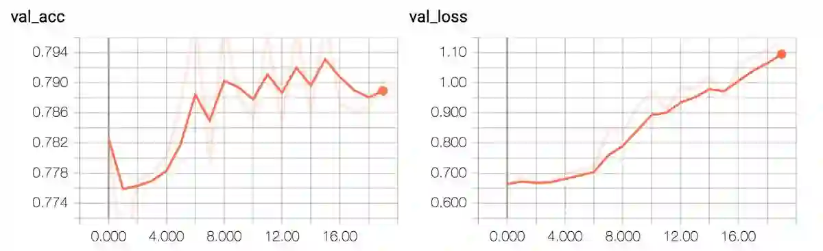 大约需要每 epoch1 分钟的时间训练这个(以及下一个)模型,我们使用了单个 Tesla K80 GPU。如果你使用的是 CPU,可能需要花较多的时间。