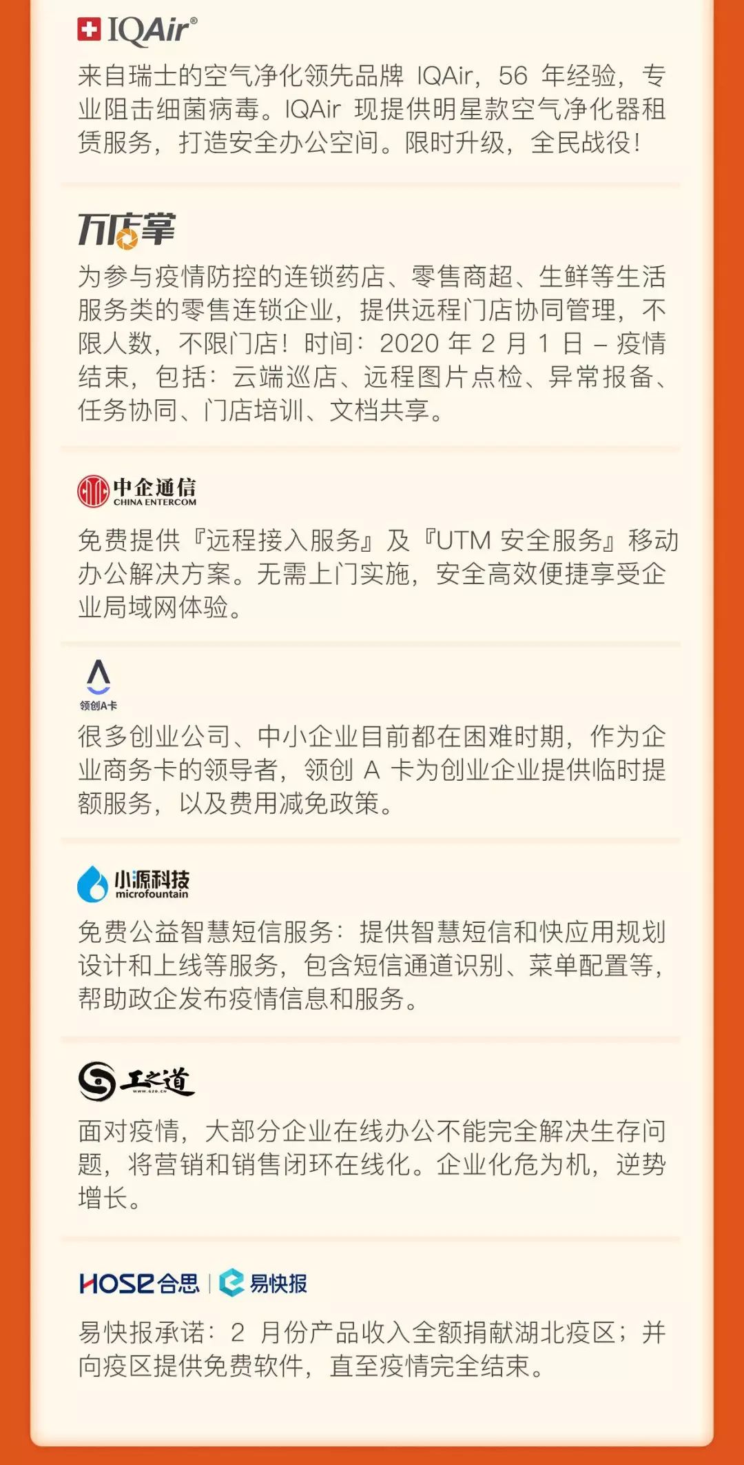 最后,再次感谢所有参与本次抗击疫情联合行动的企业,也感谢那些默默付出并未留下姓名的所有企业。让我们携起手来,在渡过此次困难和挑战的同时,承担企业社会责任,传递正能量。为中国企业助力,为疫情期间经济建设助力!