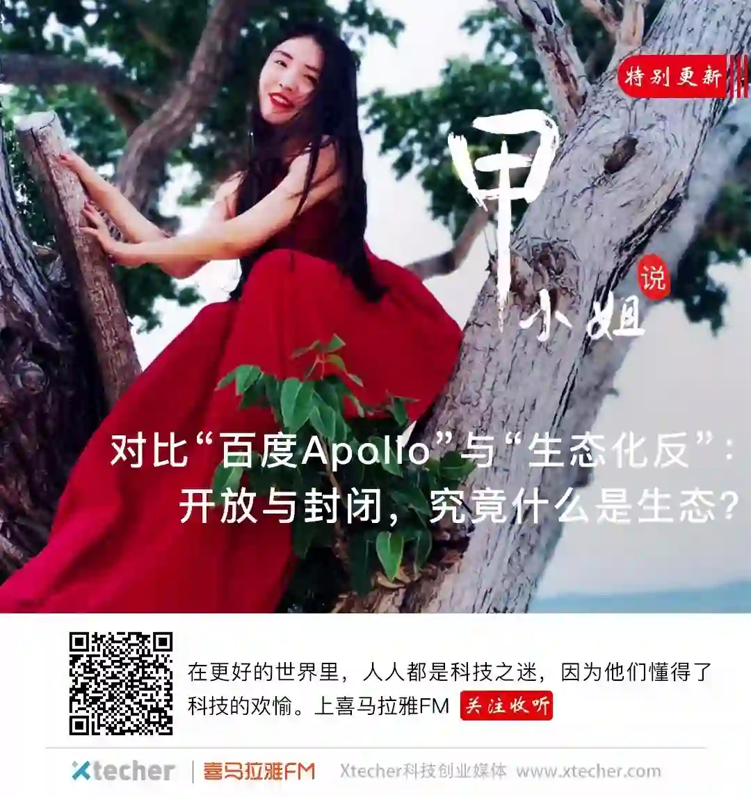 甲小姐第二十三期新鲜出炉:《对比“百度Apollo”与“生态化反”:开放与封闭,究竟什么是生态?》