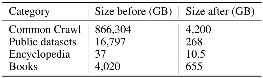 首先在数据采集阶段,源 1.0 主要基于 Common Crawl(爬取 2017 至 2021 年的网页数据,866,304GB)、开源语料(包括 SogouT 和 SogouN,16,797GB)、中文百科(百度百科和维基百科,37GB)和中文书籍(哲学、历史、人文、小说等书籍,4,020GB)等数据源,共采集了 846TB 的数据;