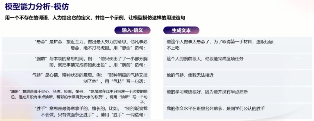 不仅如此,源 1.0 还具备强大的模仿能力,输入一个不存在的词语以及给出它的定义和示例。模型便能依葫芦画瓢,造出符合这个词语定义、逻辑和语境的语句。