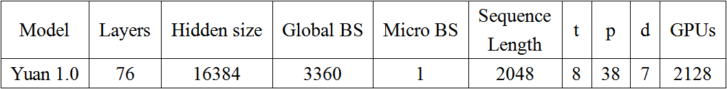 相较于 GPT-3 的 1,750 亿参数,源 1.0 是其参数量的 1.404 倍。面对如此巨大的参数量,浪潮 1.0 在 2,128 个 GPU 集群上跑上 16 天完成了训练,每个 GPU 的实际训练性能达到 140 TFlops,消耗的总算力大约为 4,095 PetaFlop/s-day