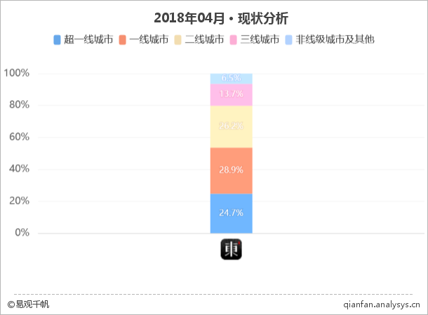 2018年4月东家APP用户城市分级分布