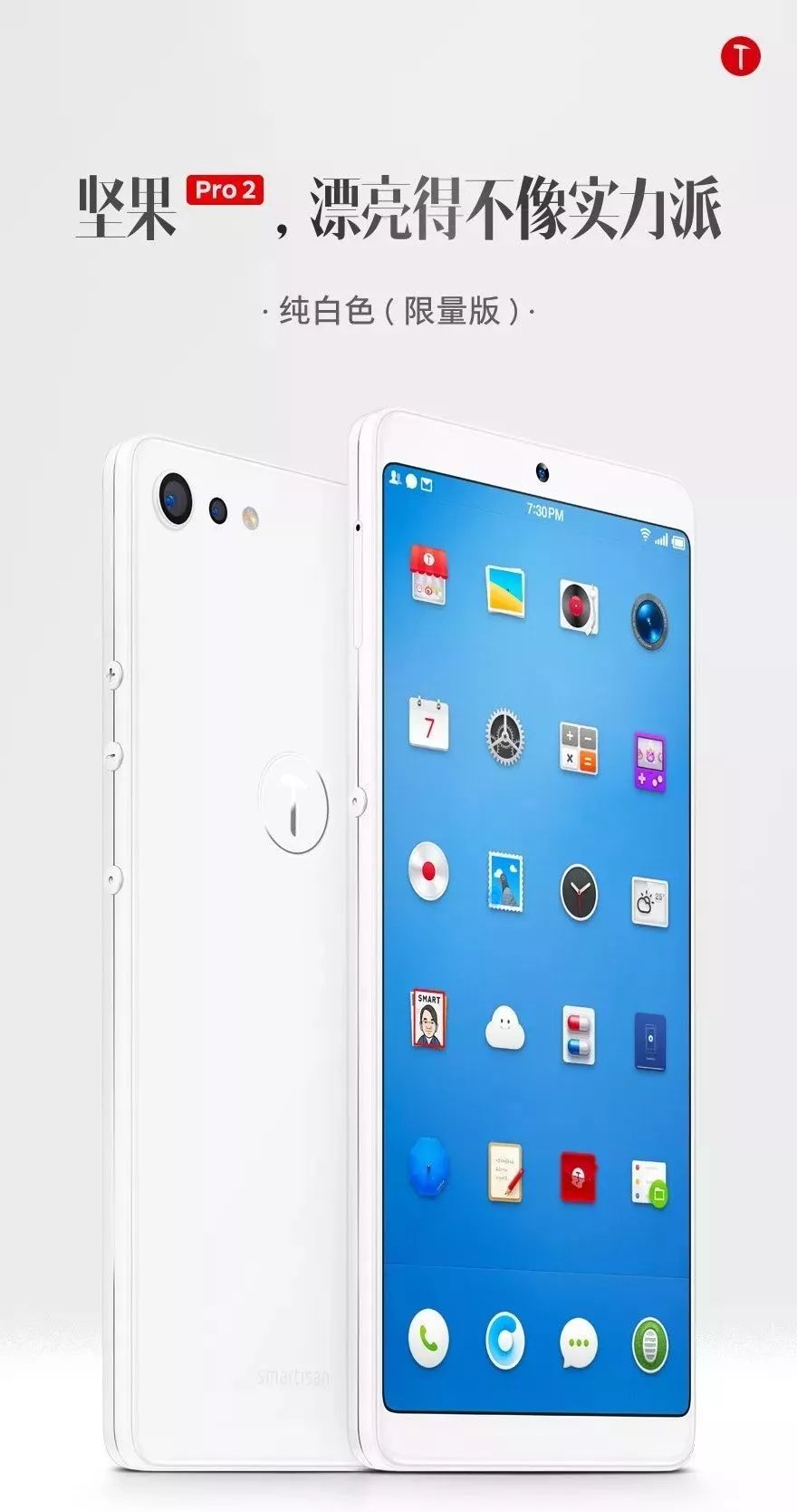 其他方面1月30日晚,锤子科技正式宣布推出坚果Pro 2纯白色限量版。