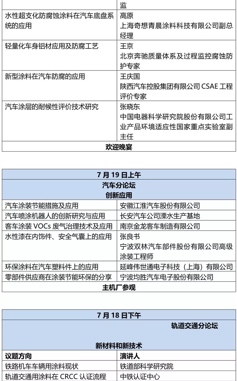 论坛聚焦轨道交通和汽车两大领域,邀请轨道交通车辆和汽车主机厂、零部件涂装负责人、涂装设备企业、涂料和原材料企业、测试及模拟软件供应商、测试实验设备供应商、科研院所和高校等共同参与,分享国内轨交车辆和汽车行业现状;探讨绿色环保涂料涂装技术;迎接轻量化材料给涂料、涂装和防腐老化带来的新挑战;宣传贯彻新的行业标准。