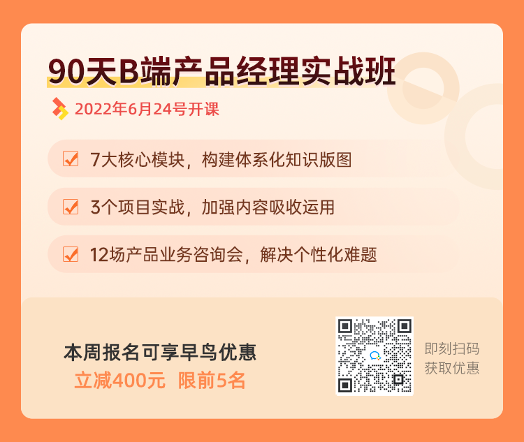 推荐你来《90天B端产品经理实战班》,多位10年+经验大厂实战导师在线直播,带你掌握系统的B端产品工作方法,助你顺利转岗&提升专业能力,实现跳槽涨薪小目标!