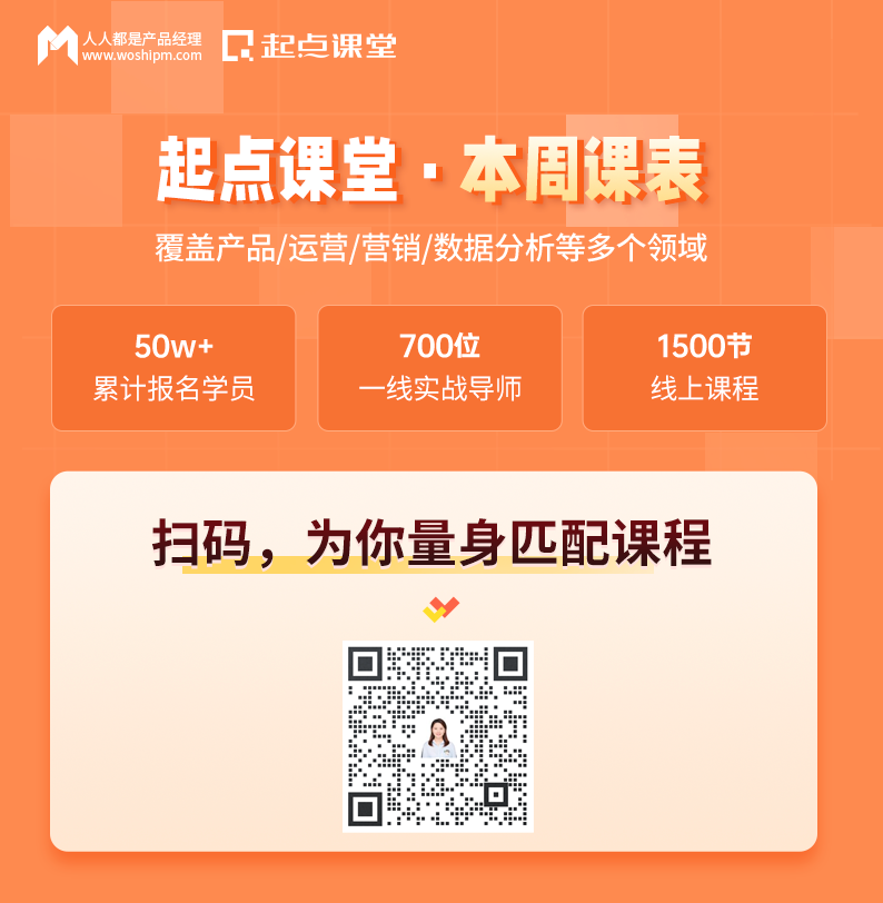 人人都是产品经理&起点课堂联合一线大厂实战导师,打造了产品/运营/营销一系列体系课以及专项突破课,帮助大家提升自身能力体系,早日实现涨薪/跳槽的目标。
