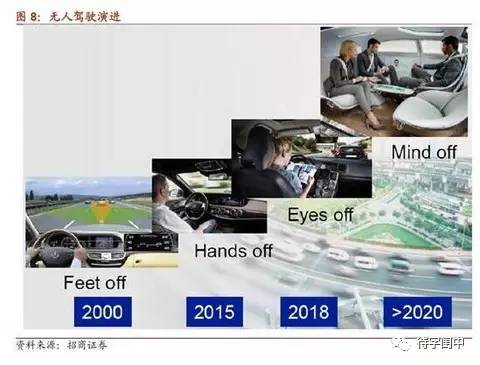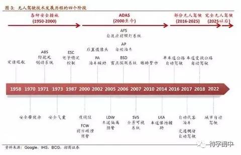 2016年以后,部分无人驾驶的功能如单车道自动驾驶、交通拥堵环境下的自动驾驶、车道变化自动驾驶、城市自动驾驶等等有望逐步实现。再进一步过多到完全无人驾驶。