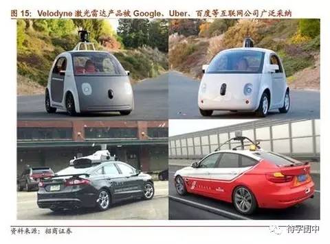 Google无人驾驶原型车、Uber无人驾驶测试车、百度无人驾驶测试车都采用了Velodyne。