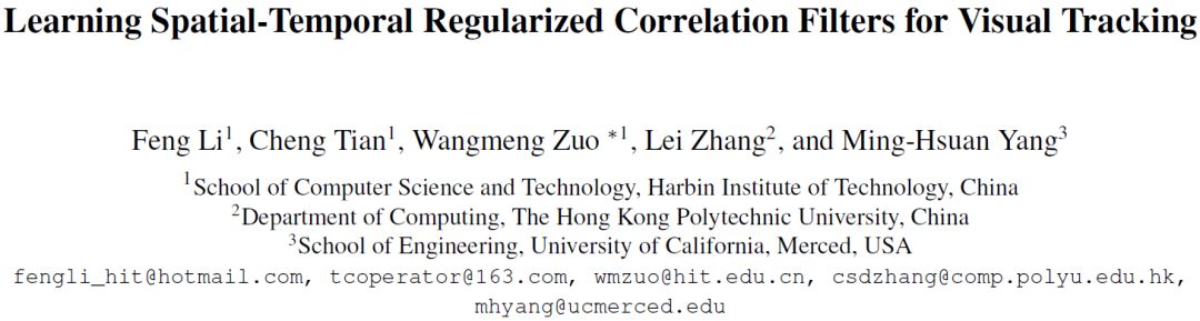论文:Learning Spatial-Temporal Regularized Correlation Filters for Visual Tracking(学习用于视觉追踪的空间-时间正则化相关滤波器)