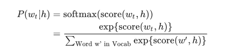 其中 score(wt, h) 计算目标词 wt 与上下文 h 的相容性(常用点积)。