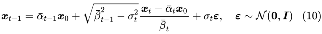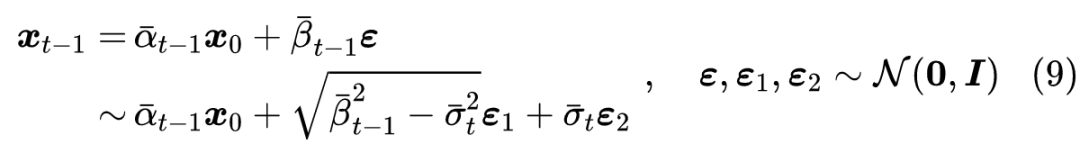 上面两式结合,就是最一般的主流扩散模型框架的反向过程,其中 DDPM 取了