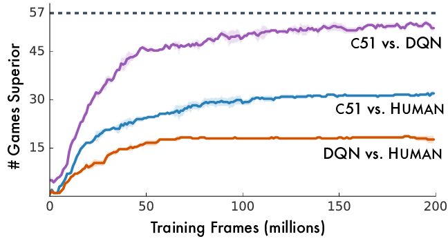 从我们的结果可以看出,分布视角带来了更好、更稳定的强化学习。现在每一个强化学习概念都可能需要从分布视角下重新思考,也许它只是这一方法的开端。