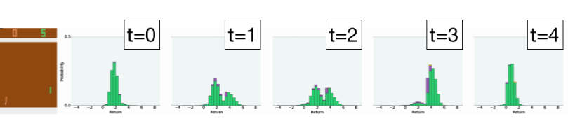 正如我们的训练过程实例,它为那些截然不同的结果保留各自的预测,而不是将其总计为一个不可平衡的平均数。事实上,我们认为我们获得提升的结果很多一部分来自智能体建模其自身随机性的能力。