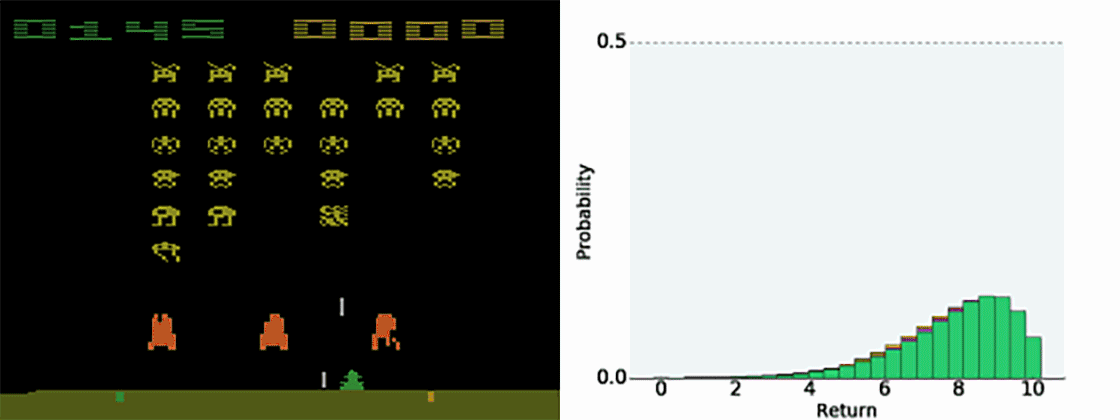 在新论文中,我们展示了不仅对奖励期望值建模是可能的,同时对奖励所有的变化建模也是存在可能的,我们称之为价值分布(value distribution)。这就令新型强化学习系统要比以前的模型训练更快、更准确,但价值分布更重要的是它有可能启发我们重新思考整个强化学习。