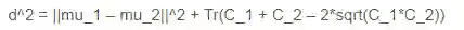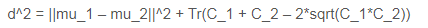 fid = ssdiff + trace(sigma1 + sigma2 - 2.0 covmean)
