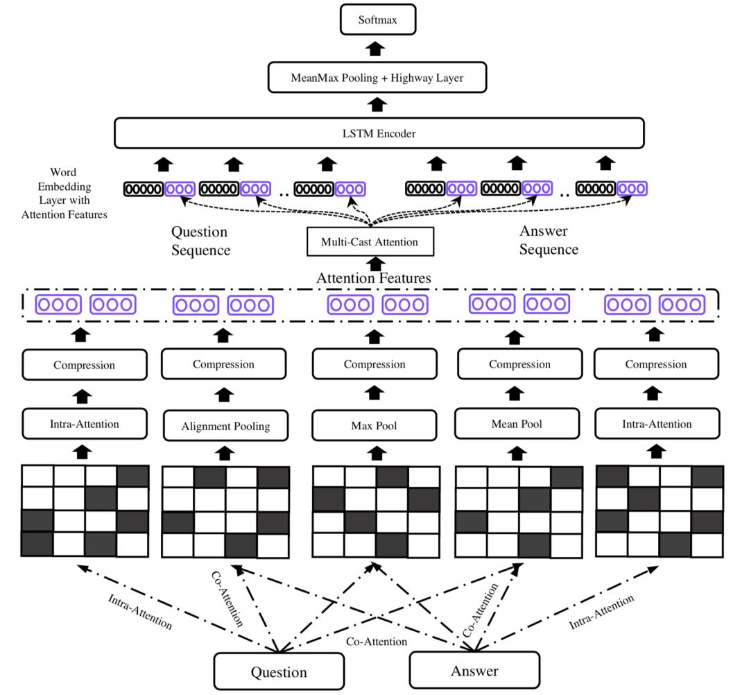 17. [MCAN] Yi T, Luu T, Siu H. Multi-Cast Attention Networks for Retrieval-based Question Answering and Response Prediction. KDD 2018.