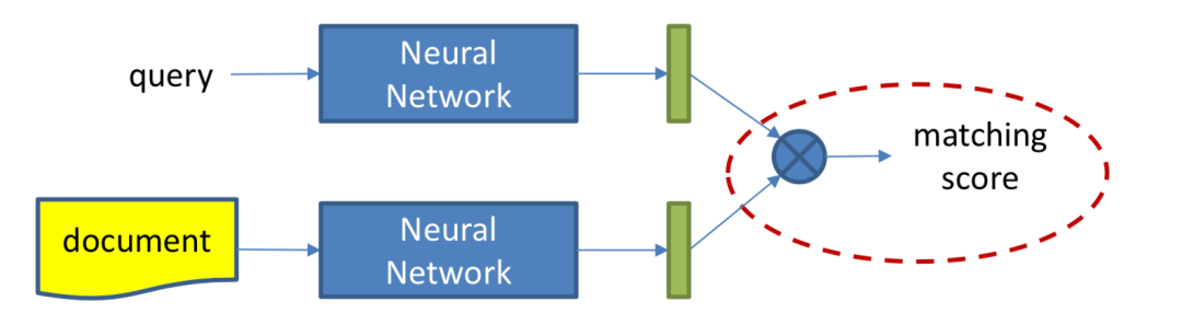 ① 表示层:计算query和doc各自的representation,如图3.2中蓝色圈所示。