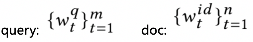 对于query来说,由于一般都比较短,因此query的上下文向量表示queryvec用整个query的所有term求平均作为其上下文表示;对于doc来说,类似于word2vec的思想,取上下文滑动窗口大小为w