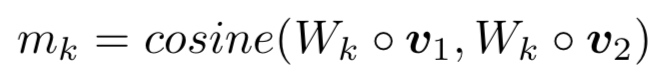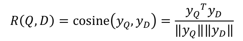 在原始的DSSM模型使用的是cosine作为两个向量的匹配分数: