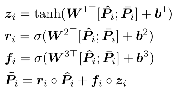 这里论文使用了Match-SRNN中的递归RNN,由4个更新gate和3个reset gate来拟合。