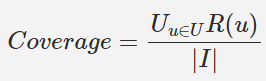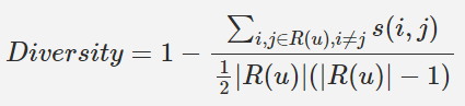 用于衡量每次推荐里面的推送的物品占所有可能性的比率,多样性越大,每次推荐的物品越丰富。