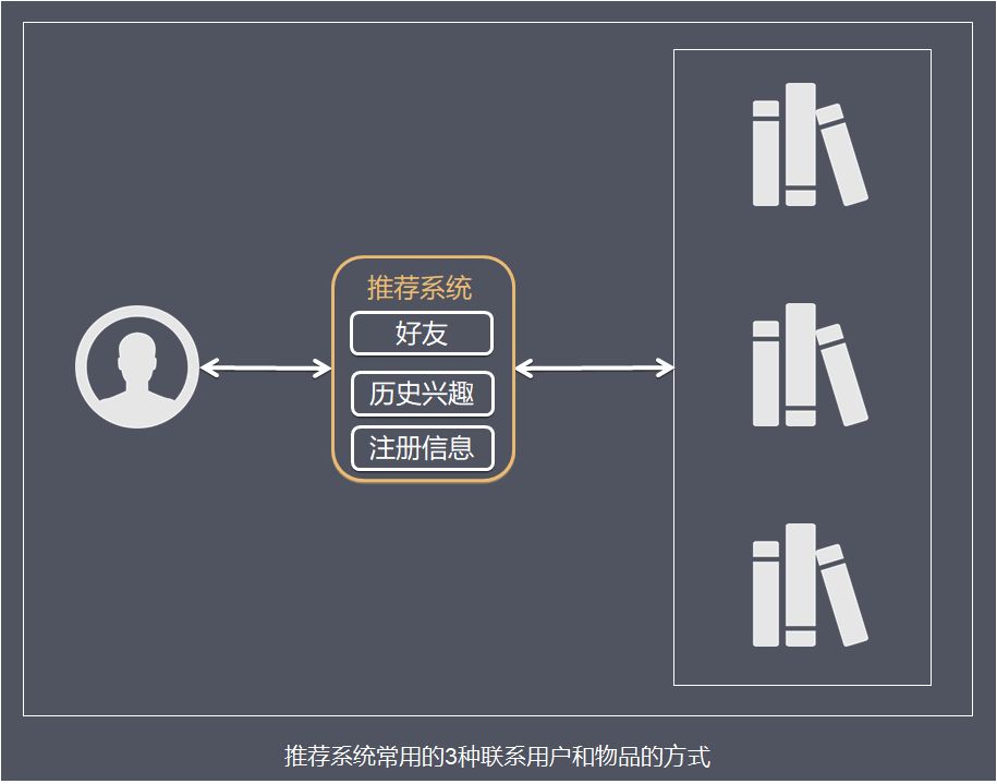 再次回顾一下上面提到的推荐系统联系用户和物品的 3 种途径。