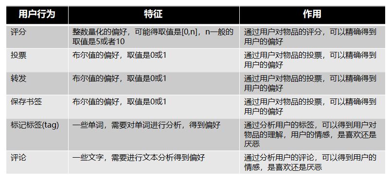 相比显性反馈,隐性反馈虽然不明确,但数据量更大。在很多网站中,很多用户甚至只有隐性反馈数据,而没有显性反馈数据。