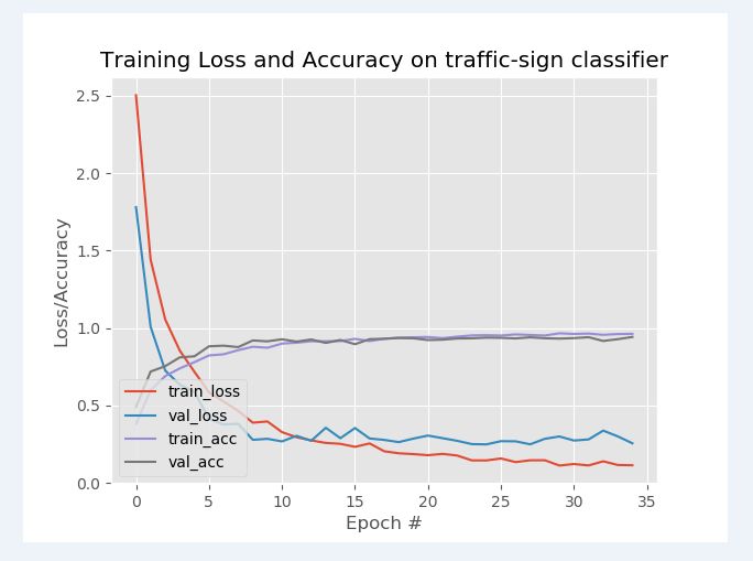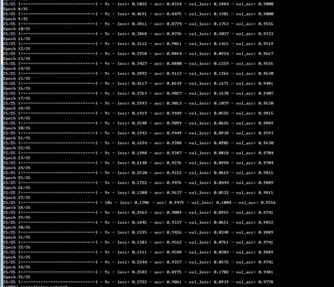 训练代码已经写好了,接下来开始训练(图片归一化尺寸为32,batch_size为32,epoches为35)。