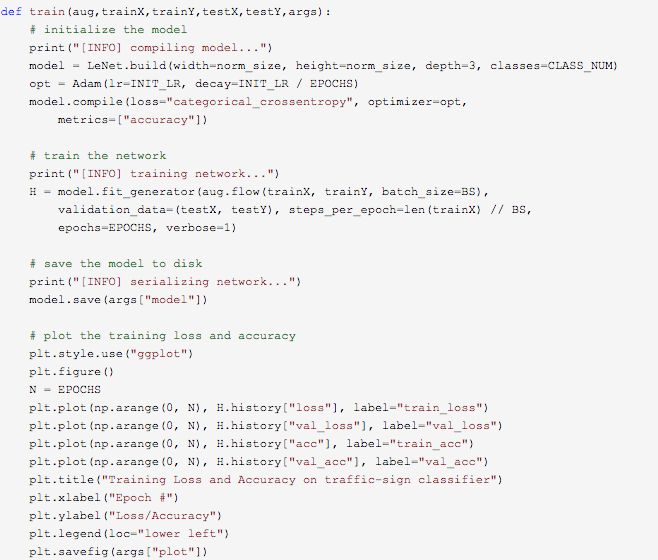 用深度学习做图片分类选的网络肯定是卷积神经网络,但是现在CNN的种类这么多,哪一个会在我们这个标志分类任务表现最好?在实验之前,没有人会知道。一般而言,先选一个最简单又最经典的网络跑一下看看分类效果是的策略是明智的选择,那么LeNet肯定是最符合以上的要求啦,实现简单,又相当经典。那我们先单独写一个lenet.py的文件,然后实现改进版的LeNet类。