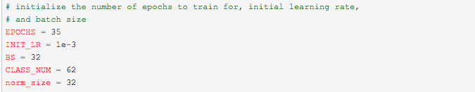然后设定一些参数,比如图片归一化尺寸为64*64,训练35个epoches。设定完参数后我们开始训练。
