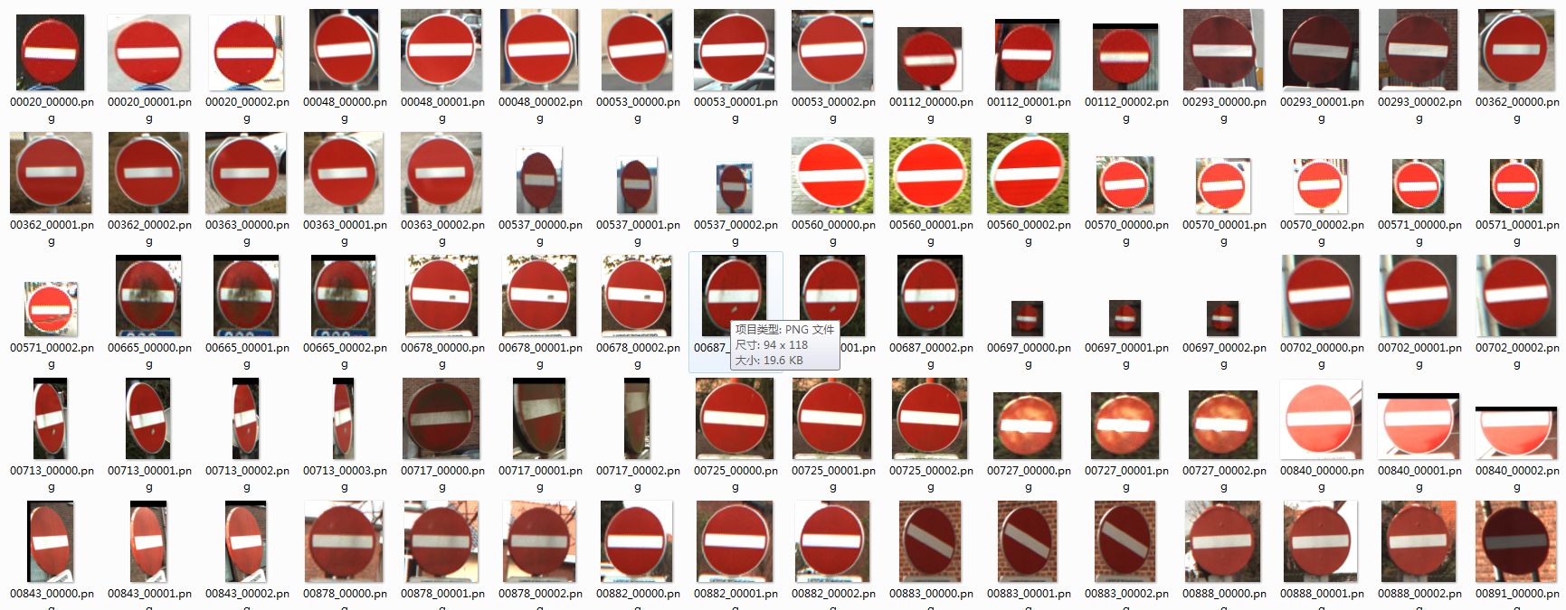 每一类的标志图片数量在十来张到数十张,是一个小数据集,总的类别是62。