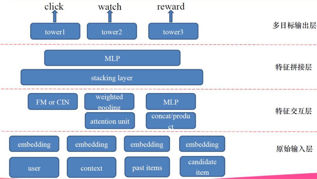 多任务模型旨在平衡不同目标的相互影响,尽量能够做到所有指标同步上涨,即使不能,也要尽量做到在某个优化目标上涨的情况下,不拉低或者将尽量少拉低其它指标,力求达到全局最优的效果。