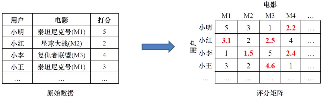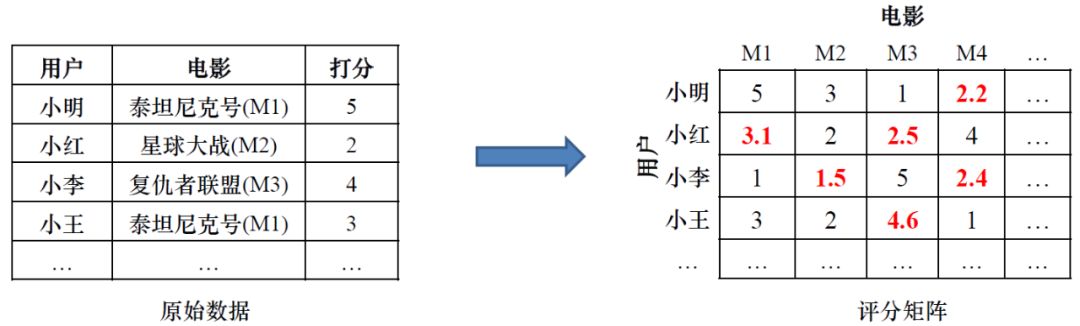和基于邻域的方法一样,基于矩阵分解方法建模的目的也是补全缺失值,只是补全的方法和基于邻域的方法不太一样。