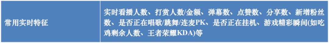 除了上面所说需要对直播的多模态内容进行理解, 一些实时的数据也是非常重要的,它们一定程度上可以反映当前直播的火热程度和受欢迎程度,放到模型中作为特征可以加强推荐系统的准确性和实时性。包括但不限于: