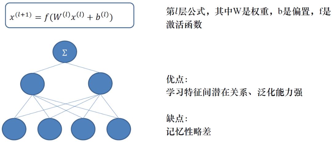 DNN的优点是学习特征间潜在关系,因为DNN是全连接层,所有元素级特征连接在一起,这样尽管训练集中没有出现过的特征组合,DNN也可以学习到,有一定的泛化能力。