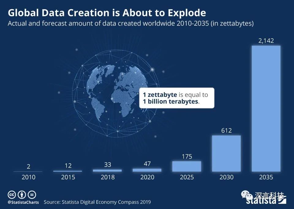 互联网信息总量的指数级爆炸增长(来自Statista)