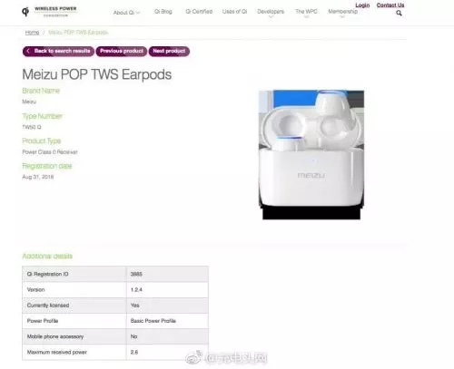 之前有曝光魅族POP真无线耳机消息,近日WPC官方网站上更新了最新的Qi认证设备列表,而魅族此前推出的POP真无线蓝牙耳机出现在了这份列表中。这款耳机的充电盒内置无线充接收电路,可以使用Qi协议的无线充电器对其进行无线充电。采用最新的Qi V1.2.4版本认证,Qi认证ID为3885,类型为BPP认证,最大接收功率2.8W。采用Type-C充电接口,耳机盒额外提供12小时电量,15小时的超长使用时间。